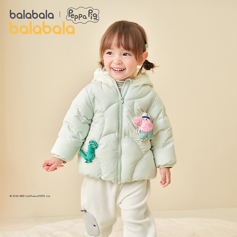 包邮 巴拉巴拉儿童羽绒服宝宝男童女童童装加厚保暖萌趣户外防风冬季潮 粉绿A41418-白鸭绒 90 (充绒量68g)